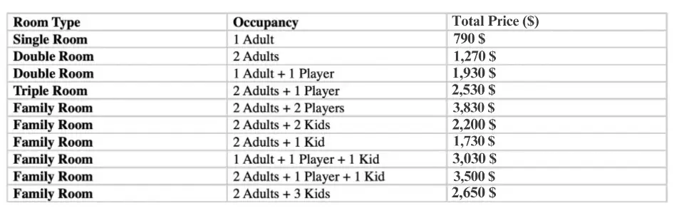 5 nights / 6 days – $ 1,350 per player